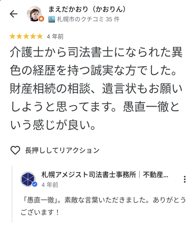 以下、グーグルへ寄せられたクチコミを抜粋して紹介します。わざわざクチコミへ投稿していただき、誠にありがとうございます。